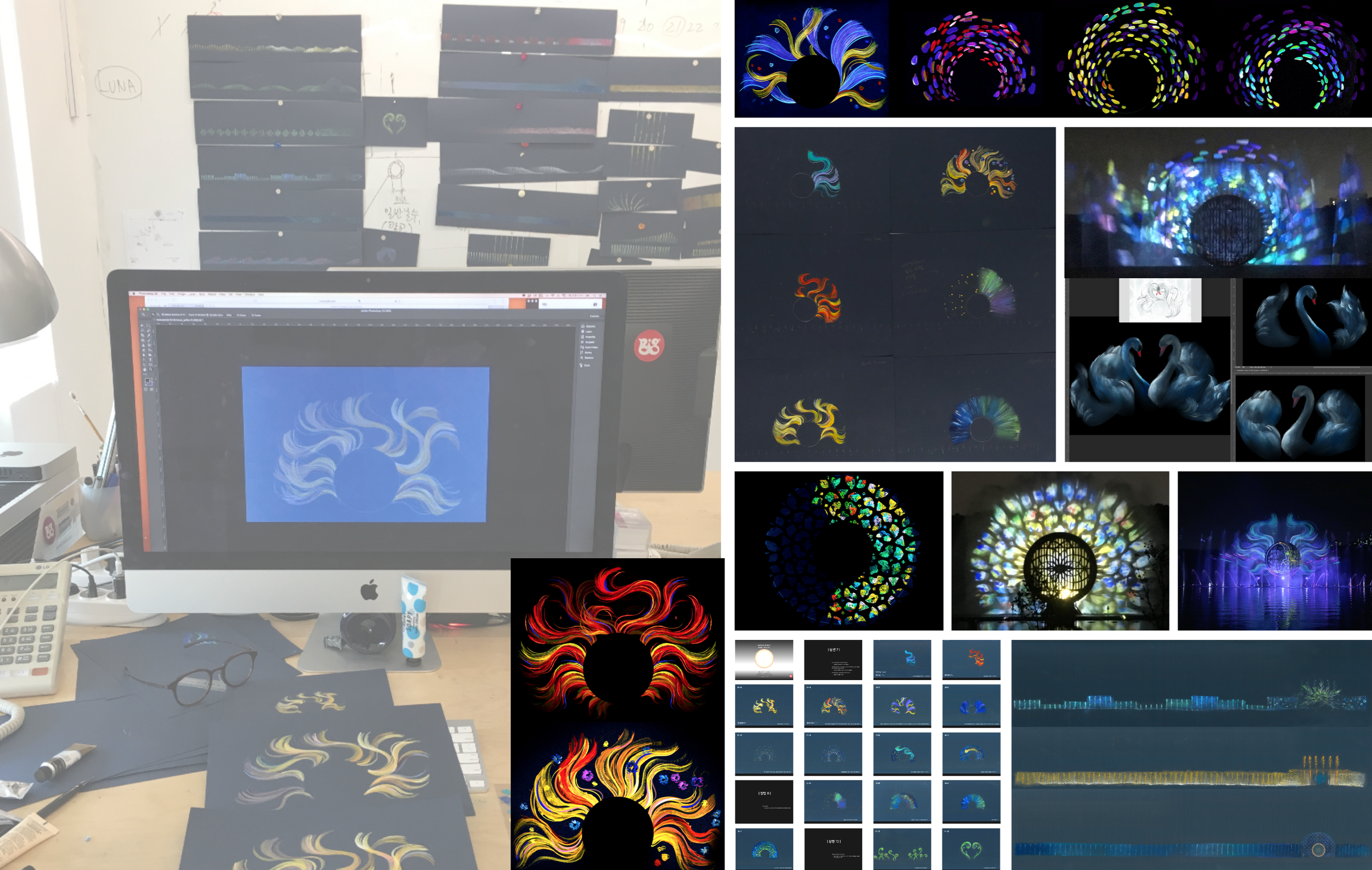 "Cosmos" is a video projection work that depicts the genesis of life and harmony in the world, utilizing 2D/3D animation. The work begins with the birth of a fragile and small life, illustrating its growth and capturing the fleeting memories of beautiful moments that we often overlook, as if they last forever.