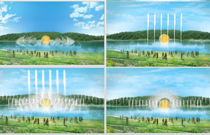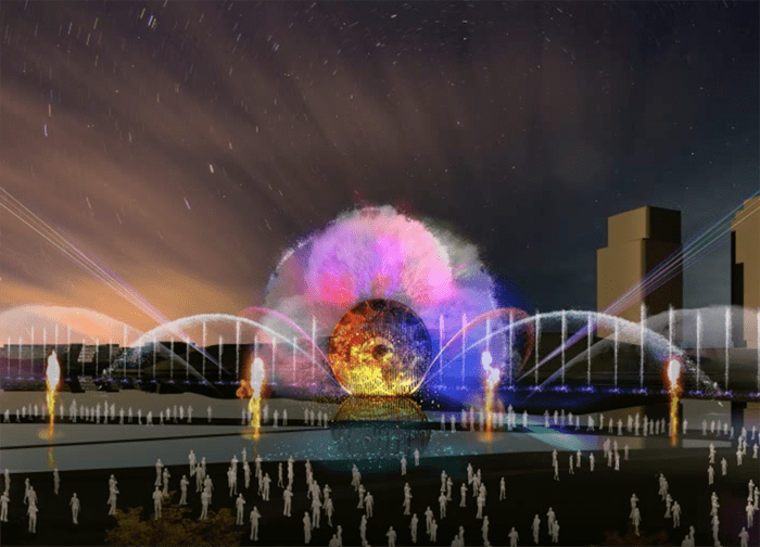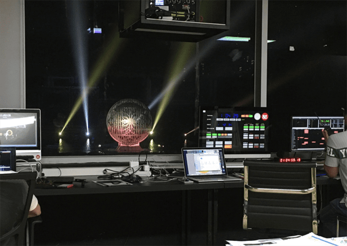 For projects requiring elements like water and light, the choreography of these media is planned.