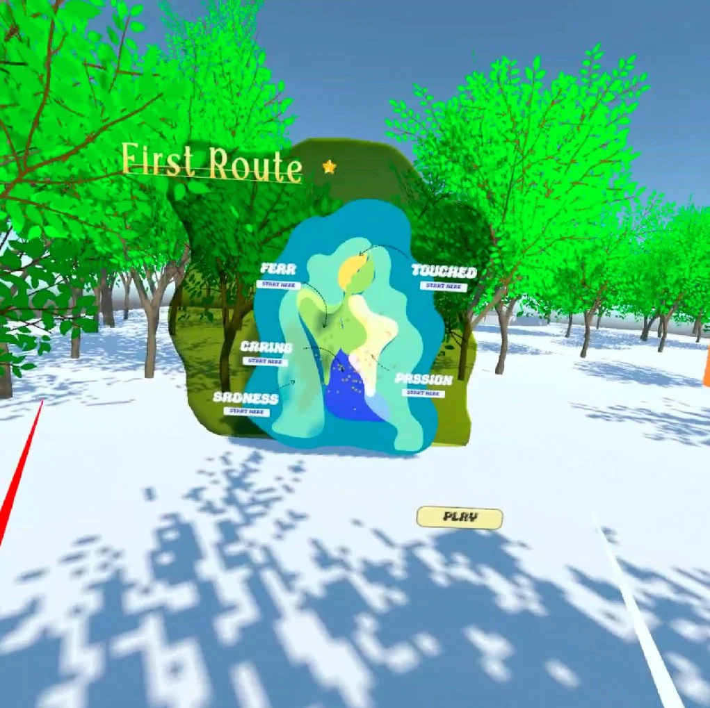 This immersive project gives the audience the experience of exploring a painting as it becomes a landscape. The movement of the audience is reflected in the paintings in the landscape, constantly changing the scenery the audience sees. In this experience, user can set a route by matching their emotions and spaces, and the route and scenery will be shared with other users.