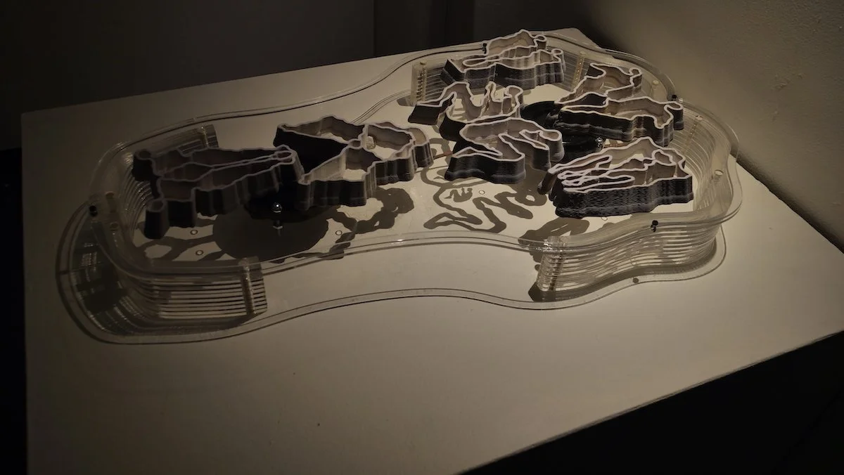 Digital ceramic, Sand, Acrylic plate, 2-Channel Amplifier, Arduino, Projection, Sound