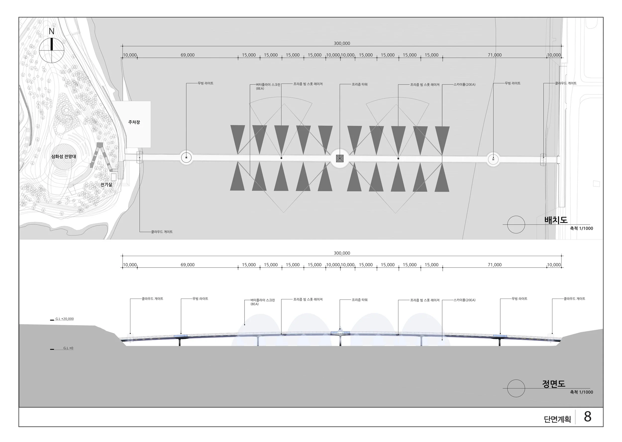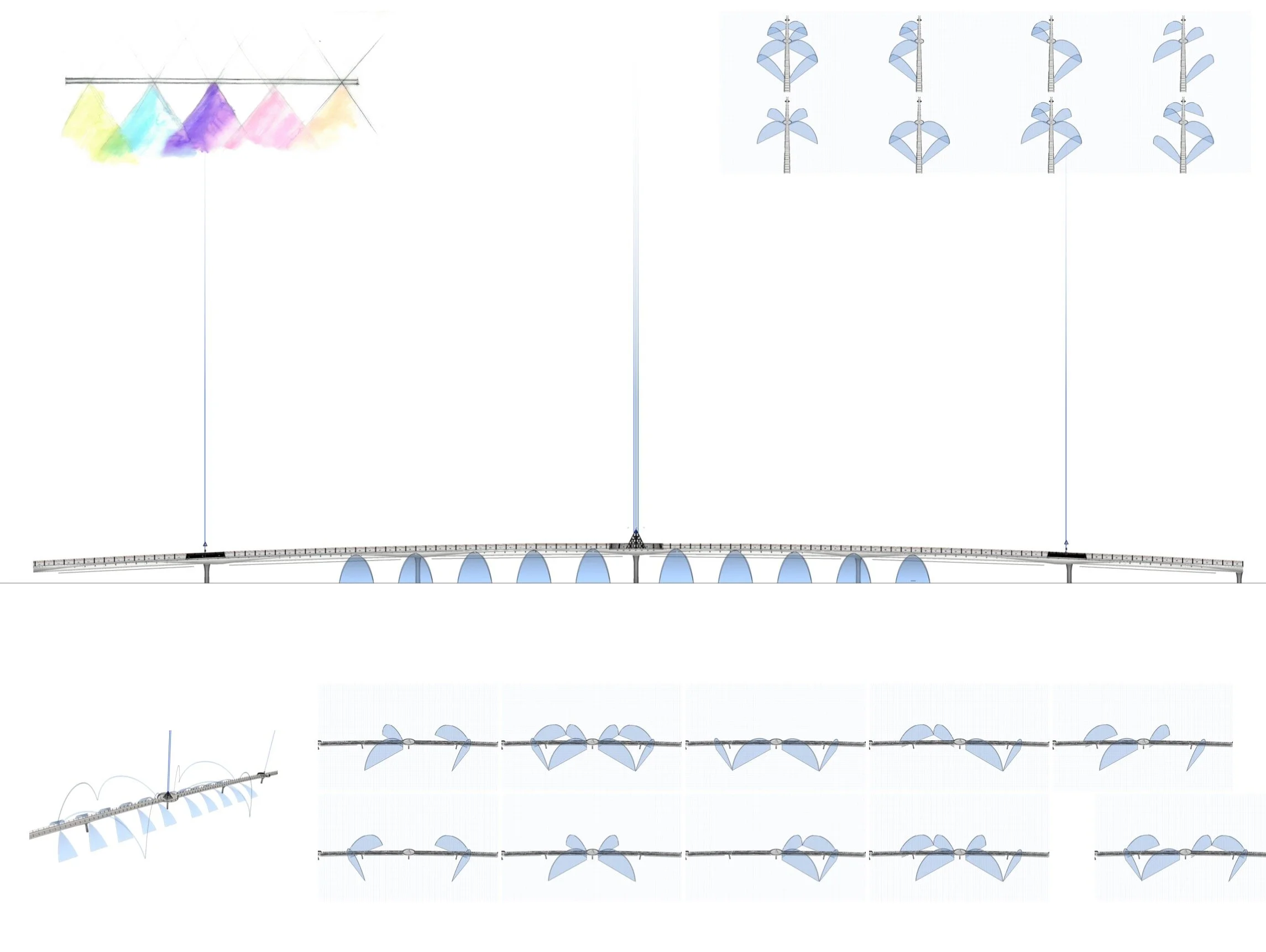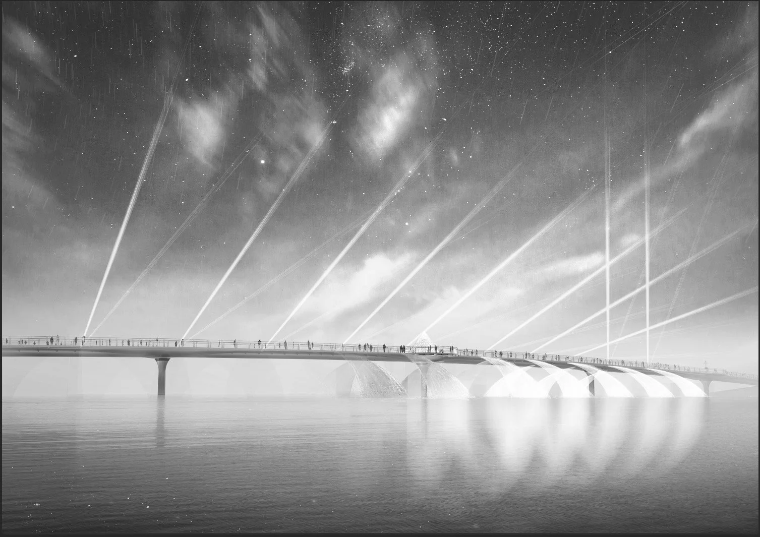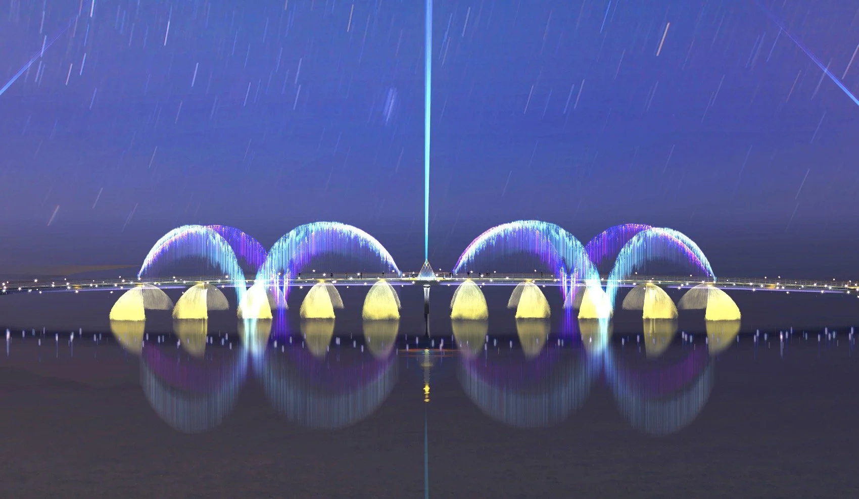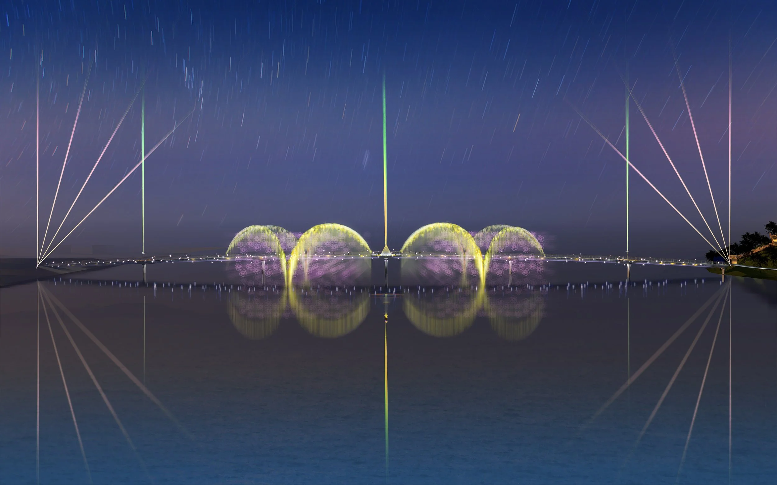 Central to the project are twenty triangular water sculptures that move and change along the path traversed by visitors crossing the bridge. As people interact with these sculptures, their movements, combined with the three-dimensional motion of the water and the ever-changing light conditions, create a mesmerizing choreography that offers a synesthetic experience. The bridge's facade is designed to change colors, adding to the visual spectacle and creating the illusion of walking on water.