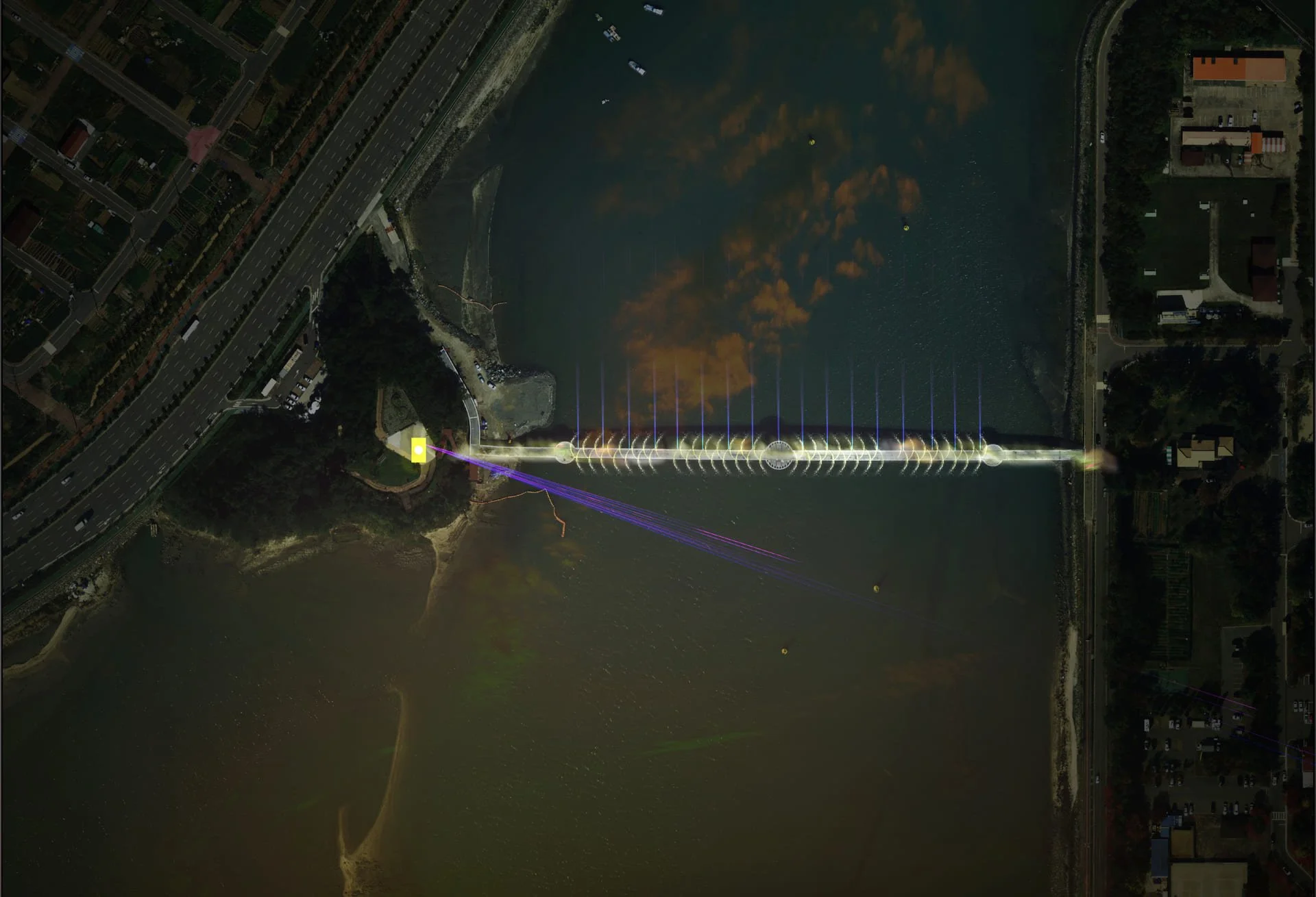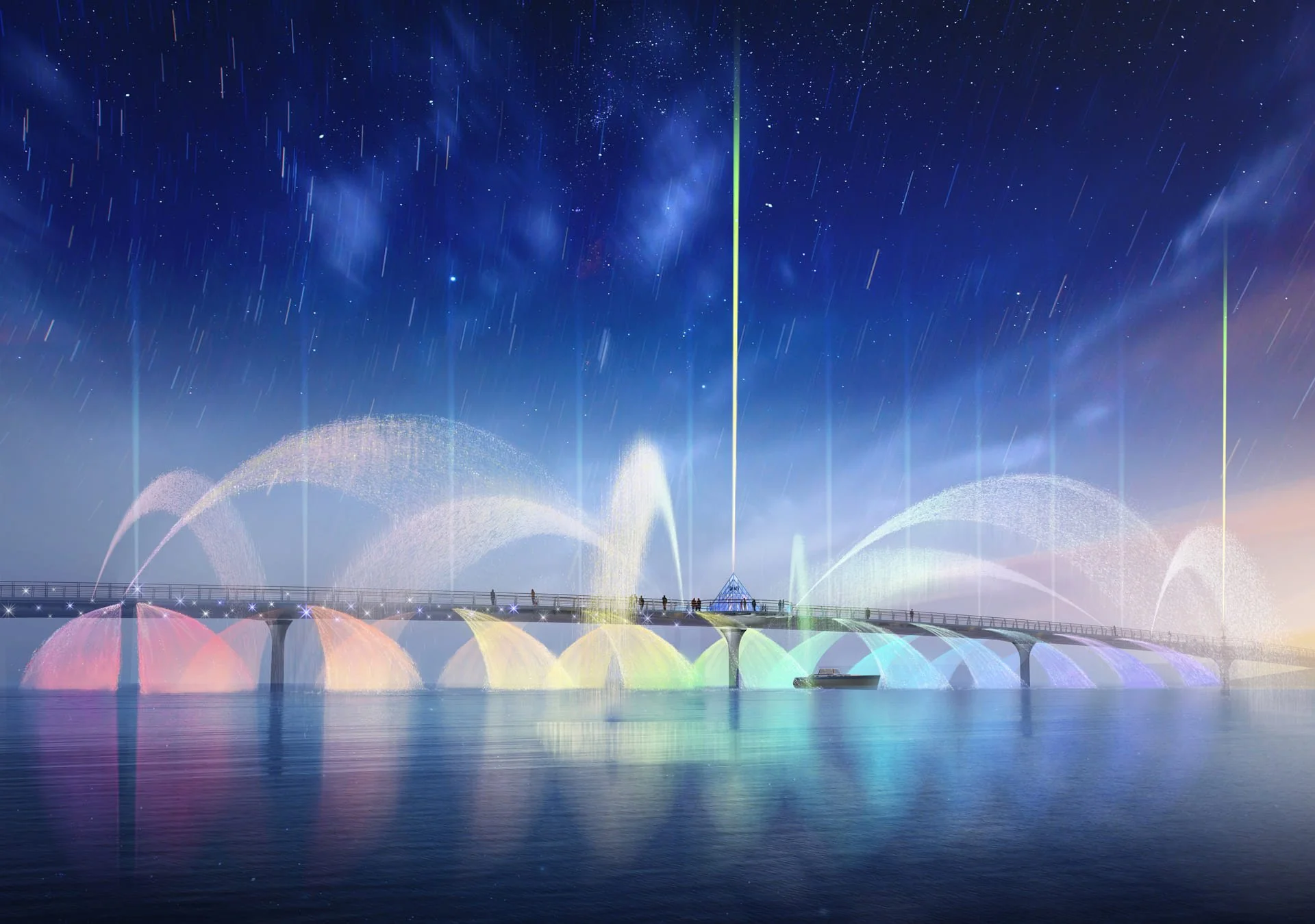 Designed to revitalize the "Rainbow Bridge," this project ingeniously enhances the visual landscape by dynamically refracting light and water at varying angles. The convergence of people traversing the bridge, the flowing water, and the shifting light orchestrates a unique three-dimensional synesthetic experience, creating a mesmerizing choreography.